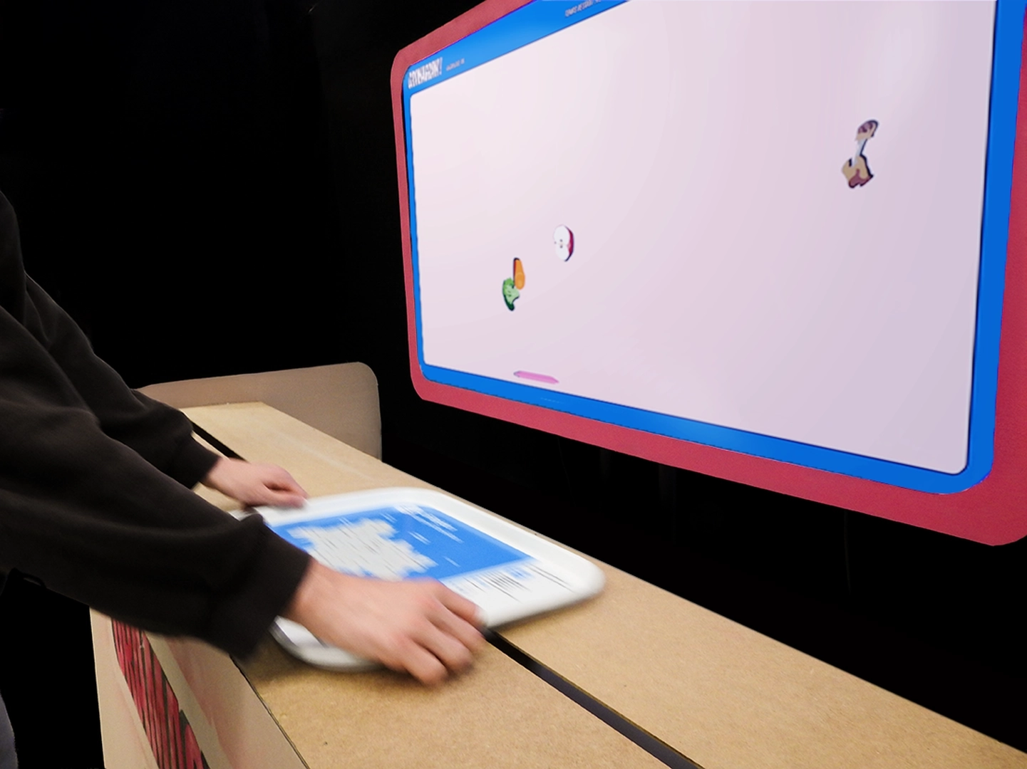 Gramagram est une installation interactive sensibilisant au gaspillage alimentaire en milieu scolaire. Co-réalisé avec Florence Decker sur p5js et Arduino, il s'agit d'une installation similaire à un jeu d'arcade, jouable à l'aide d'un contrôleur alternatif. Cette expérience gamifiée a pour but de motiver les élèves à prendre de meilleurs habitudes, sans passer par la culpabilisation.