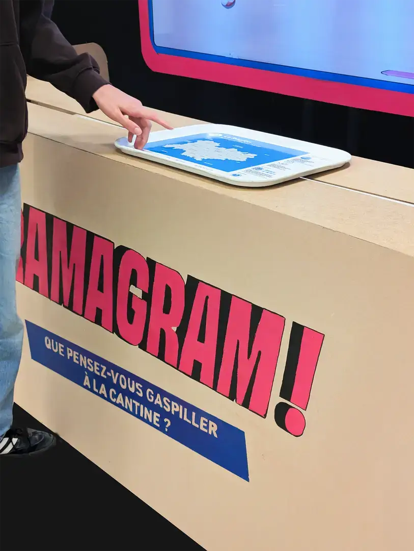 Gramagram est une installation interactive sensibilisant au gaspillage alimentaire en milieu scolaire. Co-réalisé avec Florence Decker sur p5js et Arduino, il s'agit d'une installation similaire à un jeu d'arcade, jouable à l'aide d'un contrôleur alternatif. Cette expérience gamifiée a pour but de motiver les élèves à prendre de meilleurs habitudes, sans passer par la culpabilisation.
